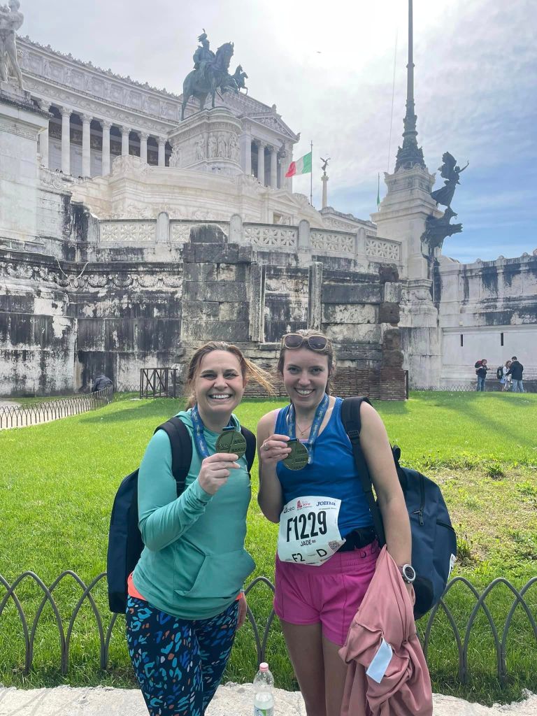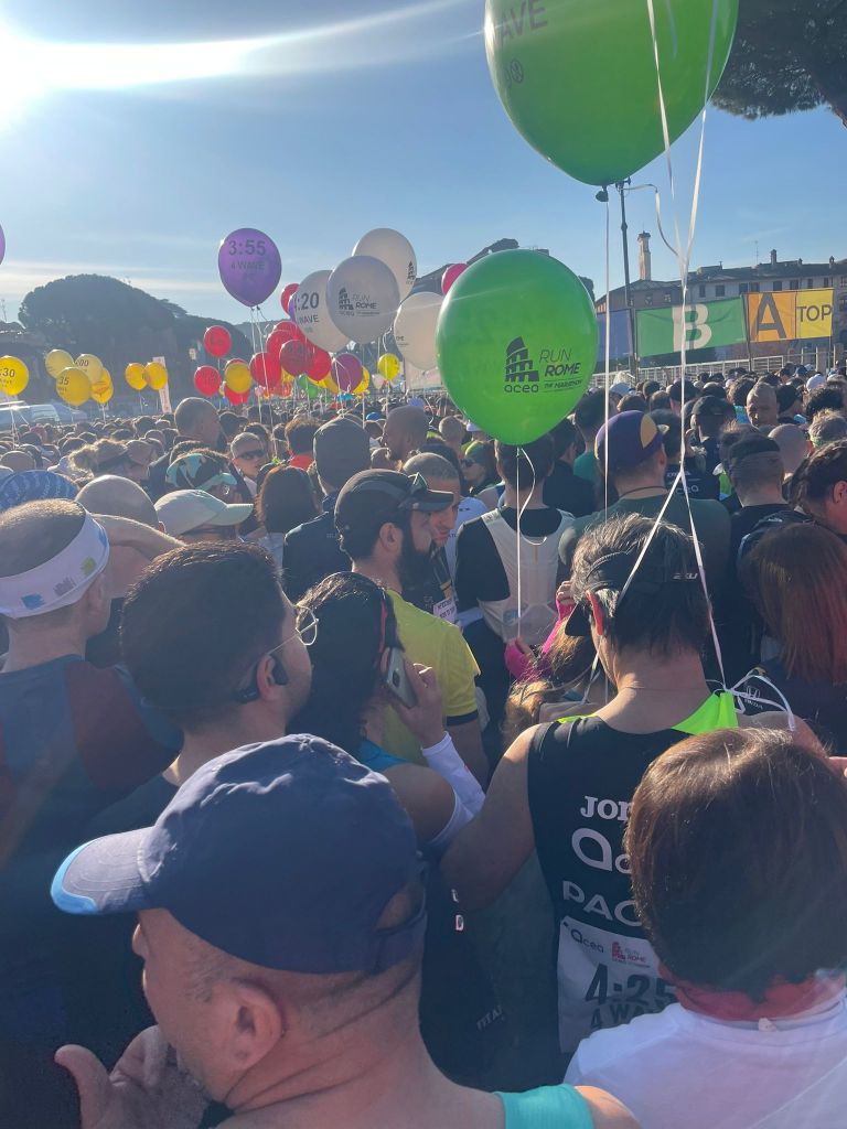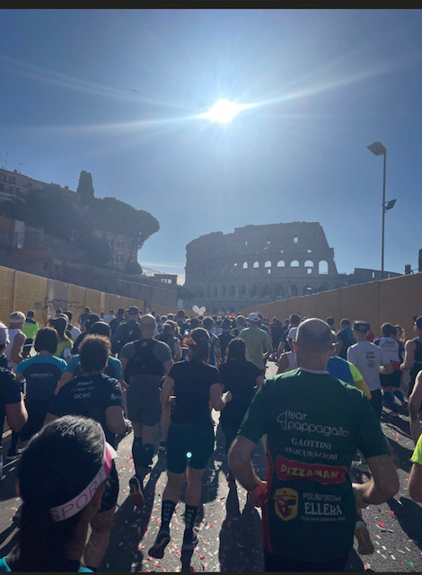 Both myself and Darija were sold this race based on how good the start is, there is normally a fly over with the Italian flag colours going over the start line and the national anthem is played to get the participants ready. Our reality was that for no apparent reason none of that happened this year! Instead we were squished to the point of beginning to feel a bit sick and think we heard one song! Oh well, we were in Rome about to begin a marathon through this beautiful city so it was hard to be to be disappointed and it felt very surreal to pass the Colosseum.